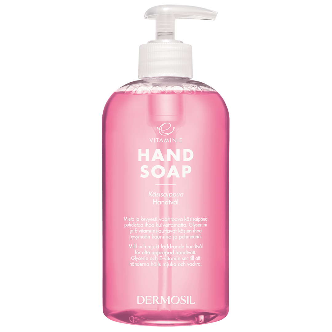 Vaimustavalt roosa Vitamin Käteseep E on kauakestev seep käte sageli pesemiseks. Seep sisaldab niisutavat E-vitamiini ja sellel on pehmelt värske E-sarja lõhn.