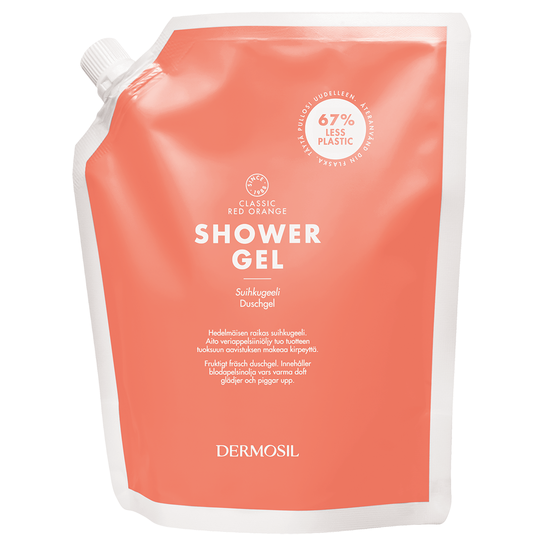Punase Apelsini Dušigeeli täitepakend sisaldab täpselt sama dušigeeli, mis Punase Apelsini Dušigeel 250 ml-s pumppudelis.
