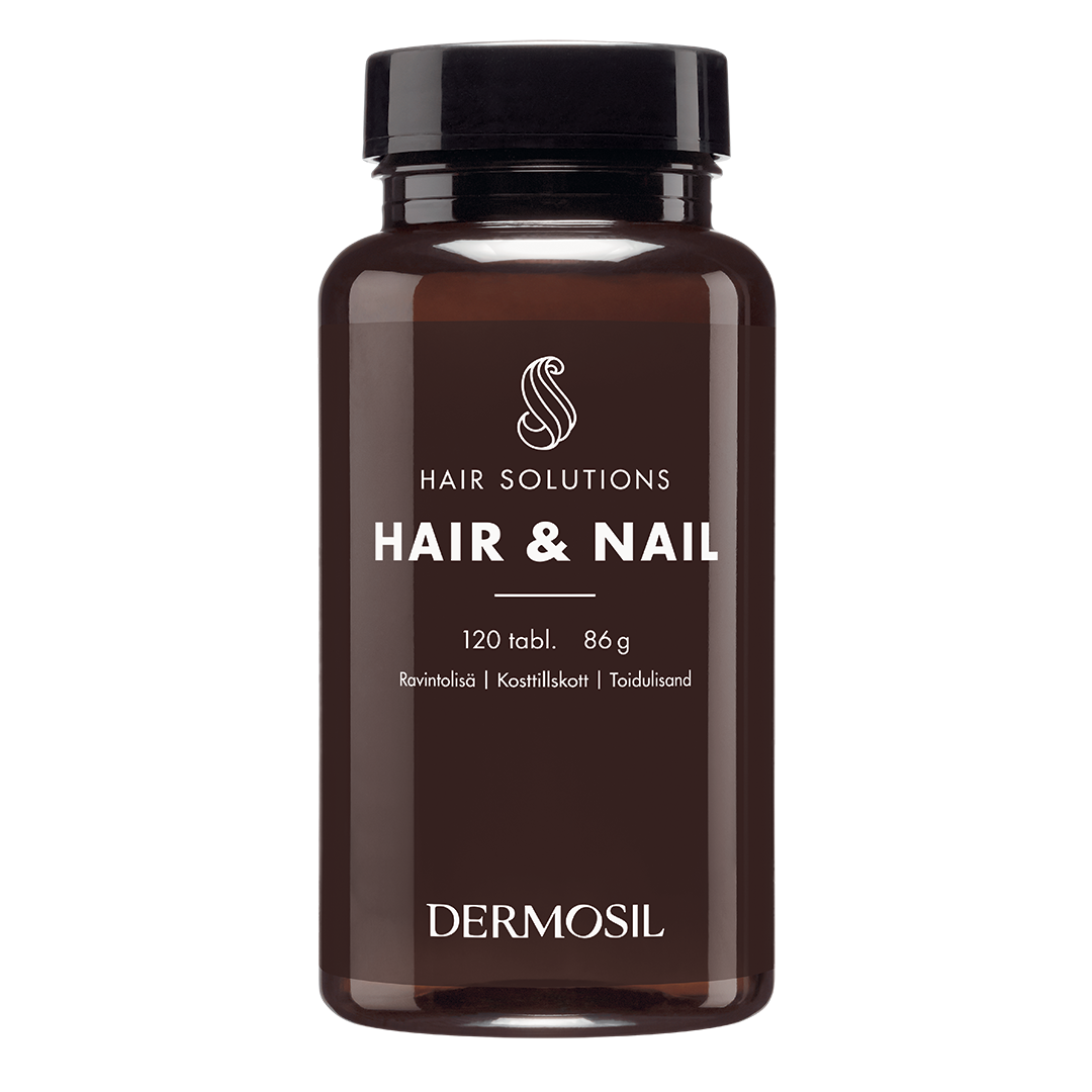Dermosili Juuksed ja küüned on toidulisand, mis on välja töötatud lõhenevate küünte ja habraste juuste tugevdamiseks. Stress, päikesega liialdamine ja juuste liigne töötlemine muudavad juuksed nõrgaks. Küüned võivad kannatada kuivuse all, mis on põhjustatud nii külmast kui ka toitainete puudusest.