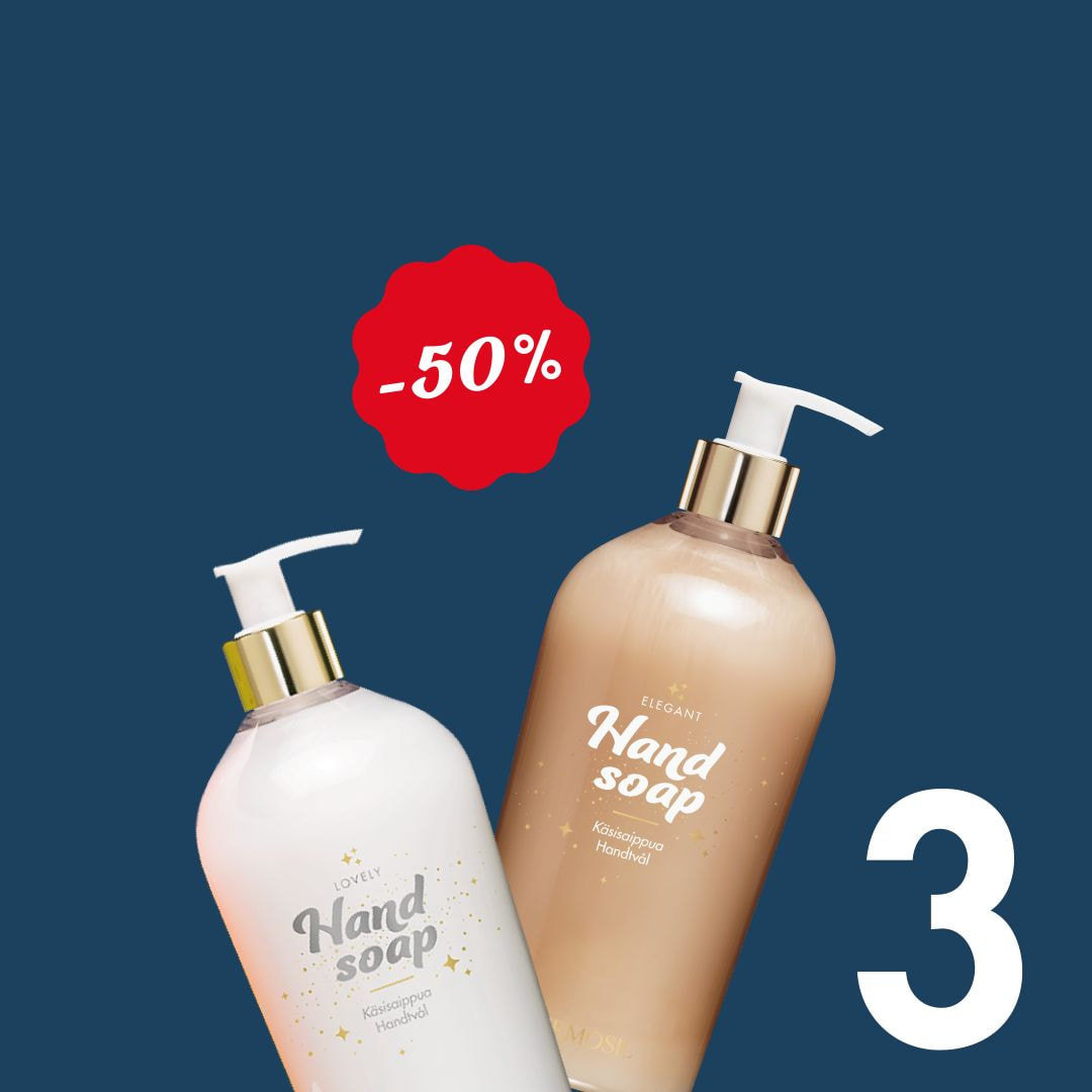 Käteseep Lovely (2464) ja Käteseep Elegant (2465) soodushinnaga 3,75 € (normaalhind 7,50 €).