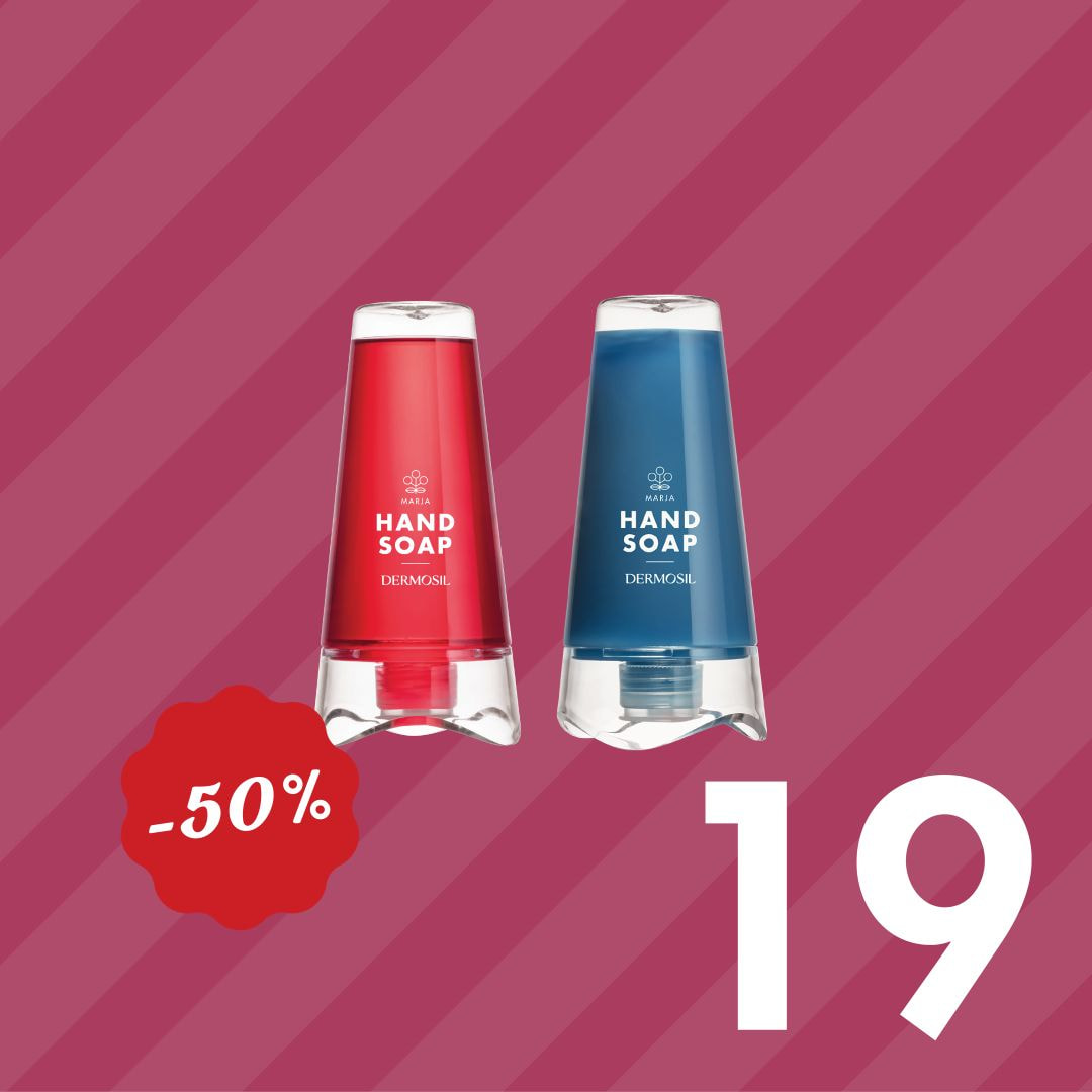 Pohlaseep (3890) ja Käteseep Mustikas (4195) poole hinnaga 3,75 €/tk (normaalhind 7,50 €).