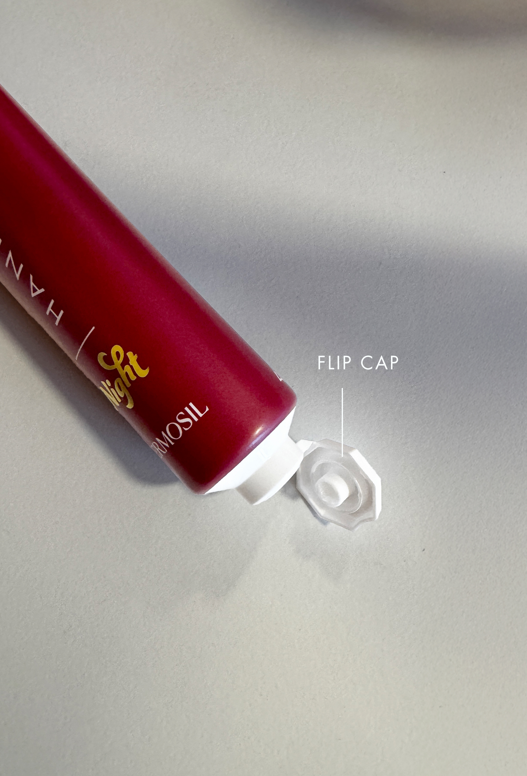Kreemituubi korki ei ole vaja keerata, kuna tegemist on flip- korgiga- lihtsalt ava ja sule kork.