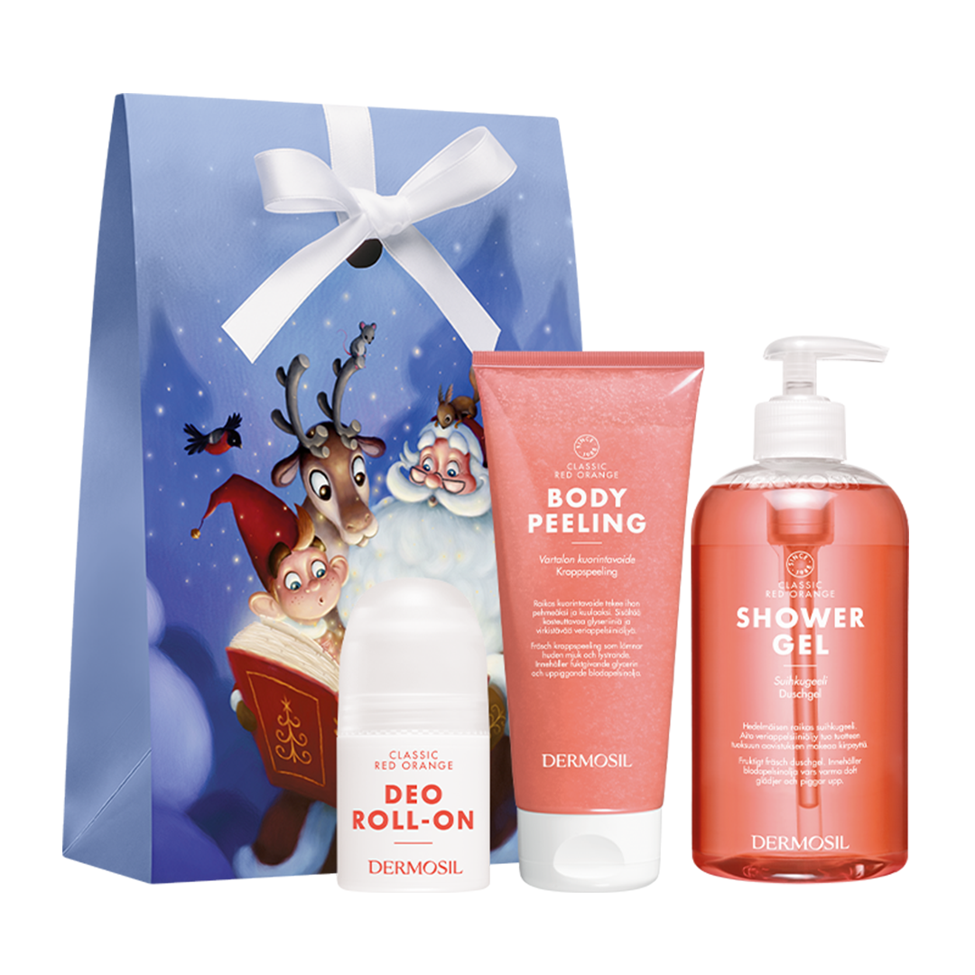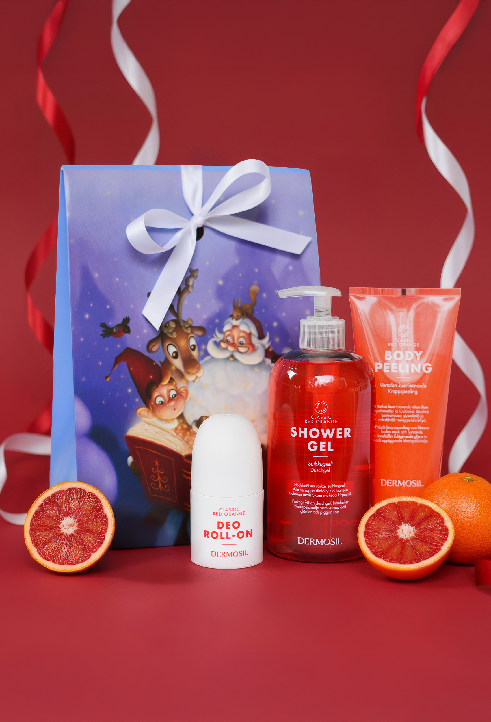Kinkekomplekt Punane Apelsin sisaldab kolme populaarset Punase Apelsini toodet kehahoolduseks – dušigeeli, kehakoorijat ja deodoranti. Magushapu ja värske veriapelsini lõhn on talvele meeldivaks vastukaaluks.