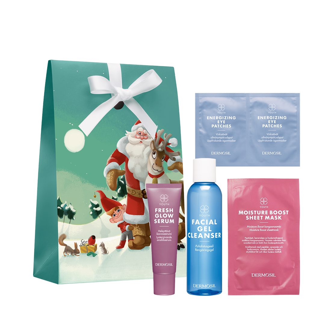 Kinkekomplekt Noorele nahale sisaldab noorte naha vajadusteks välja töötatud leebeid, kuid toimivaid tooteid. Puhastusgeel, Moisture Boost kangasmask, Ergitavad silmapadjad ja kirgastav näoseerum toimivad hellitava kingitusena ka küpse naha puhul, mis vajab sära ja elujõudu.