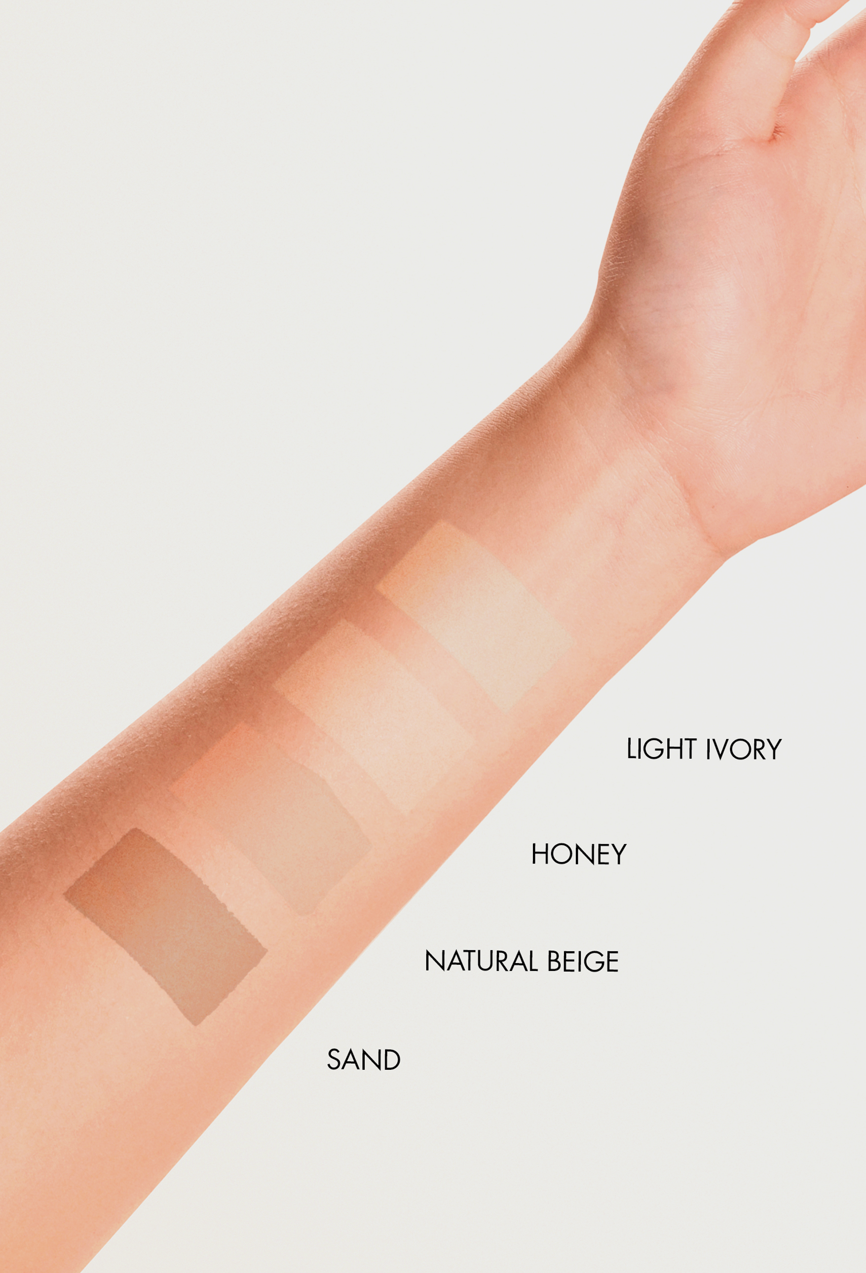 Jumestuskreem on saadaval neljas kaunis toonis: light ivory, honey, natural beige ja sand. Honey on hele, kollaka varjundiga toon.