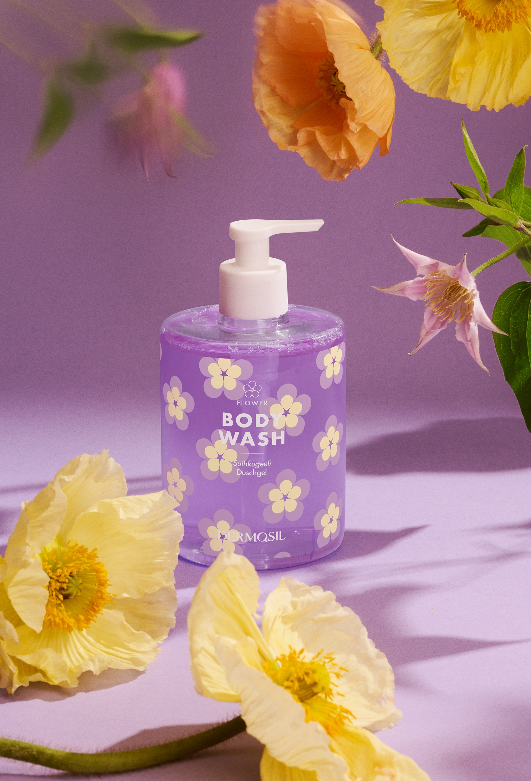 Kaunis lillakas Flower dušigeel võlub imearmsas lillemustriga pumppudelis ning toob vannituppa värskust ja rõõmu.