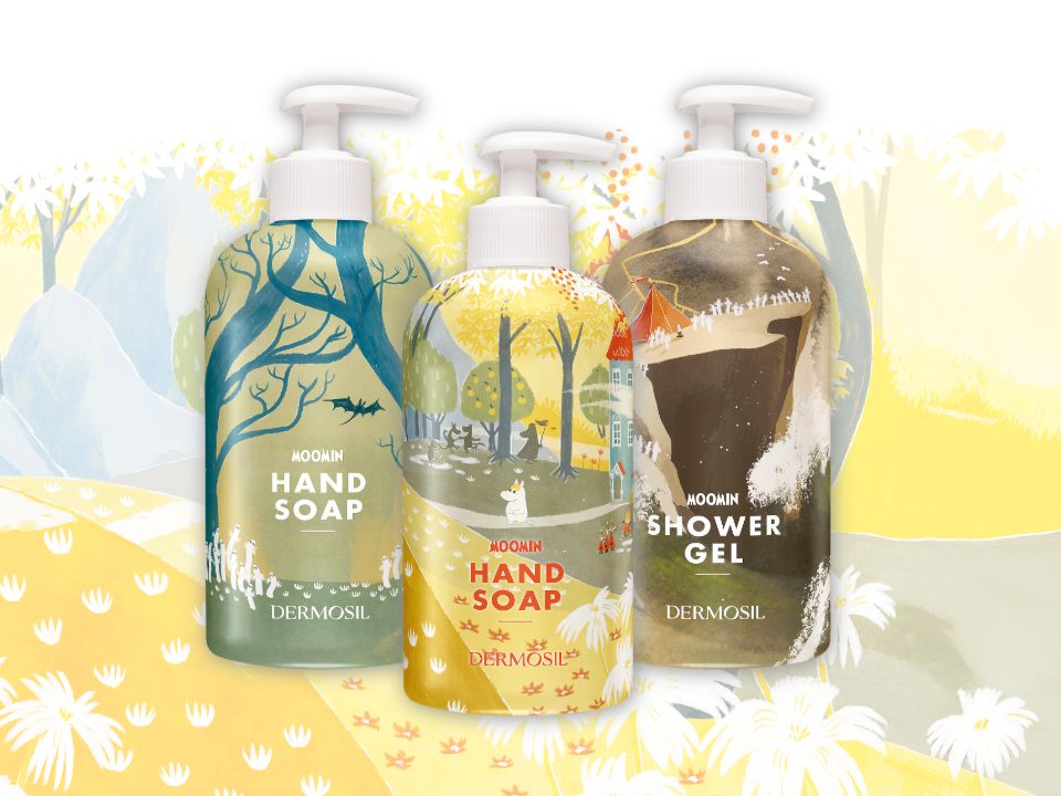 Nahale meeldiva tunde andev käteseep, mille illustratsioonil on kujutatud Hatifnatte, neid muumide lugudest tuttavaid salapäraseid rändureid.