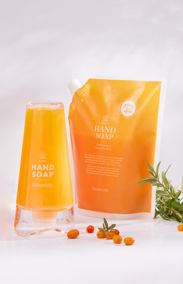 Astelpaju Käteseep on värvitoonilt pärlmuterjas oranž, tuletades meelde astelpajumarju. Seep on mõnusa värske lõhnaga ja pumba abil on seda lihtne doseerida.