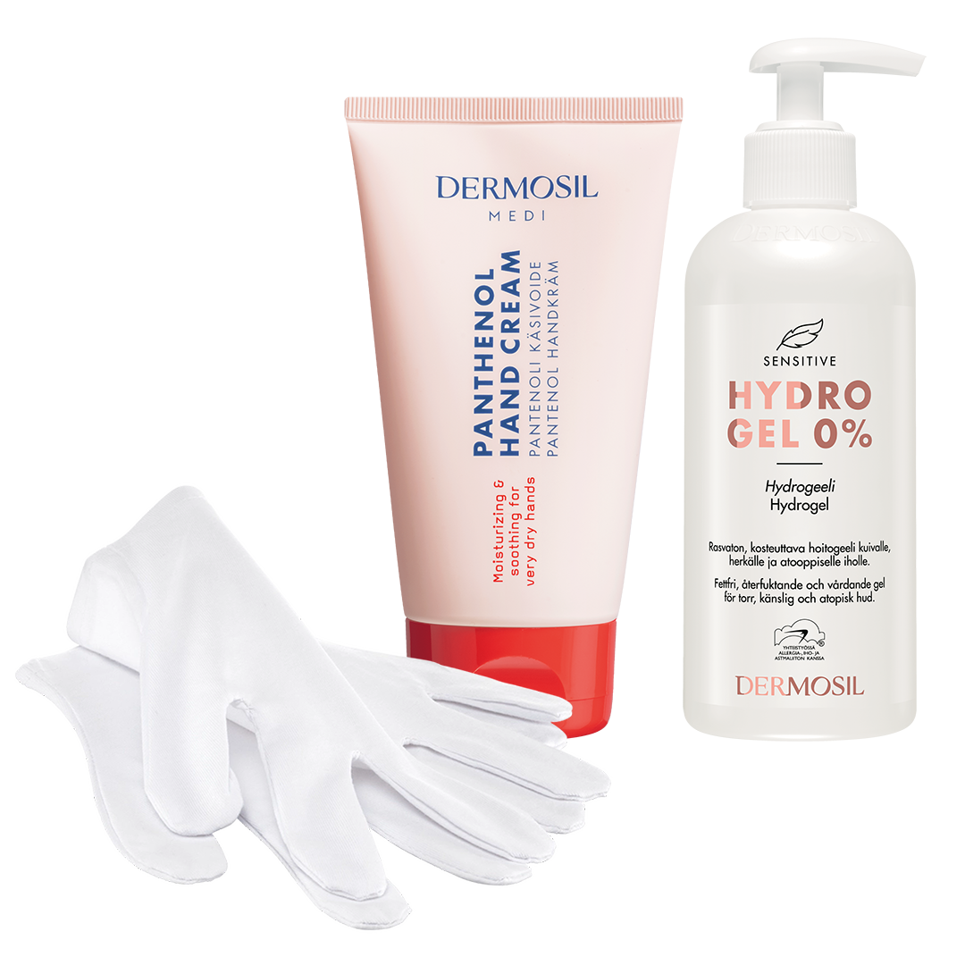 Kui käte kuivus teeb muret, võta kasutusele see tõhus komplekt! Komplektis Pehmed käed on Sensitive Hüdrogeel 0%, Pantenooliga kätekreem ja Puuvillased kindad, mis koos kasutamisel muudavad käte naha niisutatuks ja pehmeks.