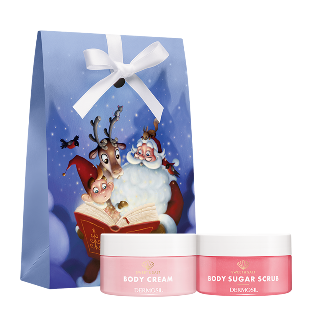 Kinkekomplekt Sweet & Salt Kehahoolitsus sisaldab võrratult häid tooteid, mis teevad keha imepehmeks. Sweet & Salt Suhkruga Kehakoorija ja Sweet & Salt Kehakreemi soolaste ja magusate koostisosade põnev kooslus toimib nahka hellitavalt.