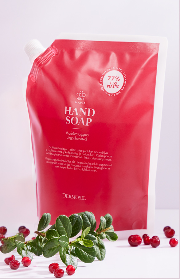 Värske lõhnaga pohlaseep täitepakendis. Puhastab õrnalt ja jätab naha pehmeks. Keskkonnasõbralik valik.