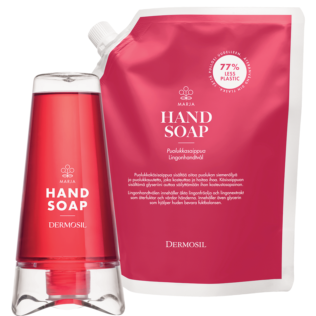 Komplekt Särtsakad pohlad sisaldab lisaks Pohlaseebile 500 ml täitepakendit. Taimeõlid teevad rikkalikult vahutavast käteseebist käte parima sõbra.