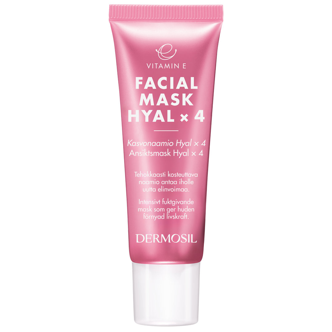 Näomask Hyal x 4 sisaldab nelja erineva suurusega hüaluroonhappe molekule, mis tagab nahale eriti tõhusa niisutuse. Hüaluroonhape aitab nahal loomulikku niiskust säilitada ja väljastpoolt nahasse niiskust siduda. Hüaluroonhape esineb meie nahas ka looduslikult, seega maski koostisosad toetavad naha enda funktsioone. Kuivõrd vanusega hüaluroonhappe kogus nahas väheneb, sobib Vitamin E Näomask Hyal x 4 ka küpsele nahale.