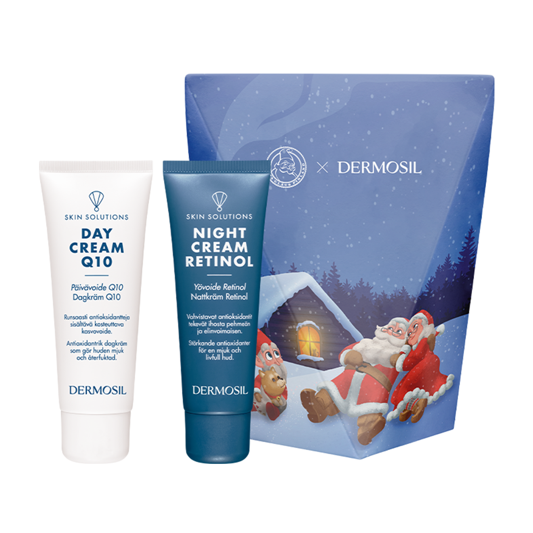 Kingi naha kaitsmiseks ja niisutamiseks, vananemisilmingute ennetamiseks ning naha elastsuse ja sära kindlustamiseks meie tootevaliku armastatud kreemiduo. Kinkekomplekt Päevakreem Q10 ja Öökreem Retinol sobib ideaalselt normaalsele ja kuivale nahale.