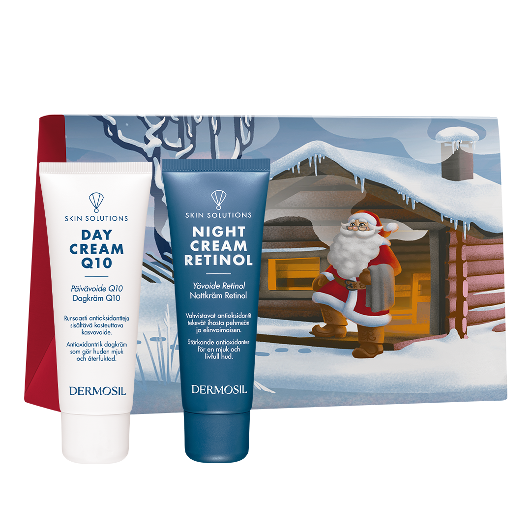 Kingi naha kaitsmiseks ja niisutamiseks, vananemisilmingute ennetamiseks ning naha elastsuse ja sära kindlustamiseks meie tootevaliku armastatud kreemiduo. Kinkekomplekt Päevakreem Q10 ja Öökreem Retinol sobib ideaalselt normaalsele ja kuivale nahale.