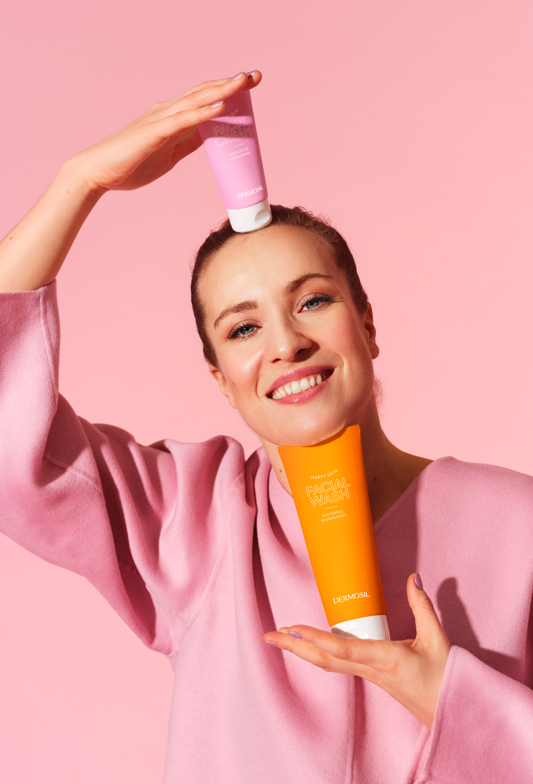 Happy Skin Näopesuvahend eemaldab ebapuhtused ja meigi. Glütseriini, uureat ja karrageeni sisaldav pesuvahend poputab oma niisutava koostisega erinevaid nahatüüpe. Veidi geeljat toodet on lihtne nahale masseerida ja maha loputada.