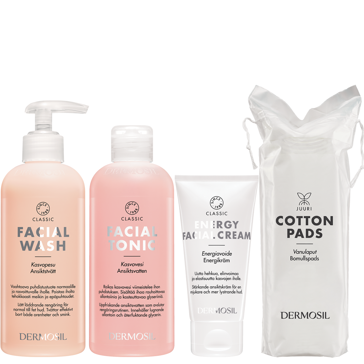 Kasuta nahahoolduses klassikute jõudu! Classic Näohoolduskomplekt teeb elu lihtsaks, sest selles on olemas kõik vajalik igapäevaseks nahahoolduseks. Tooted sobivad normaalsele ja seganahale.